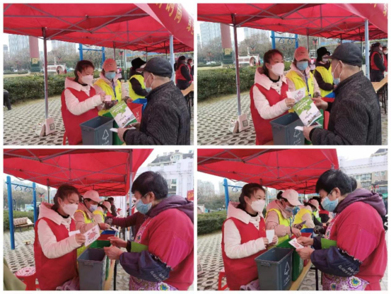 腊月十九,在南陵广场,小志愿者的故事就开始了。活动初始进行的是准备工作,悬挂活动标语,布置活动场地,清点并搬运宣传物品。第一个正式活动就是宣传引导活动,用通俗易懂的语言就老年人群体健康知识、防滑、防骗等知识进行了拉长式的宣传,同时引导居民参与理发,小家电维修、测量血压、废旧电池换绿植等免费便民服务活动。紧接着是宣讲活动,我负责向群众发放生活垃圾分类宣传手册,并对普法宣传、垃圾分类,创建文明城市等方面进行了宣讲,重点用图片演示的方式向居民讲述垃圾投放的注意事项。