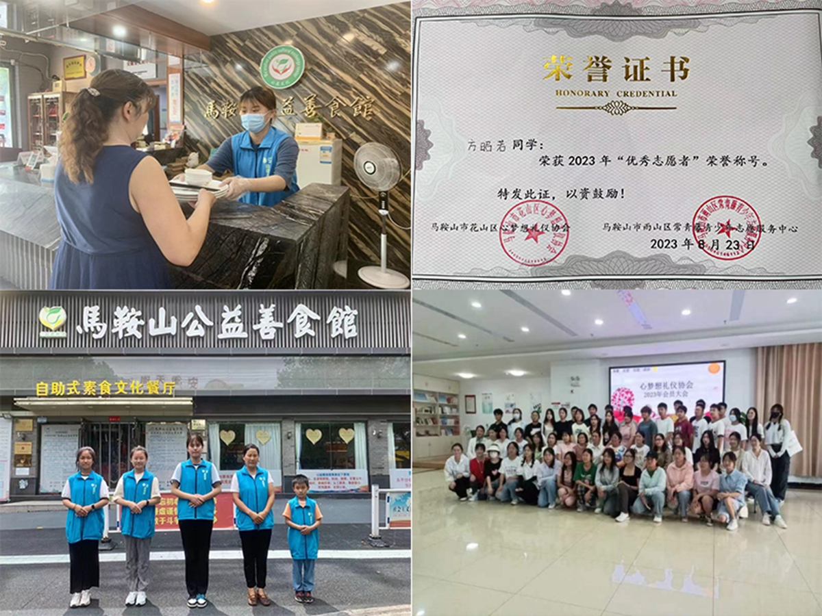 主要事迹:2023暑期,参加了马鞍山市青藤青少年志愿服务中心志愿服务活动,作为志愿者协助志愿中心开展了一系列活动:举办读书分享会,组织青少年户外运动,教授青少年文明礼仪课程等。主要负责活动前的宣传和组织,需要及时与家长老师沟通和交流,确保青少年参加活动的安全,合理安排活动环节;活动中需要及时处理好突发状况;活动后要积极宣传志愿者服务队,呼吁更多的青少年一起参加志愿服务活动。