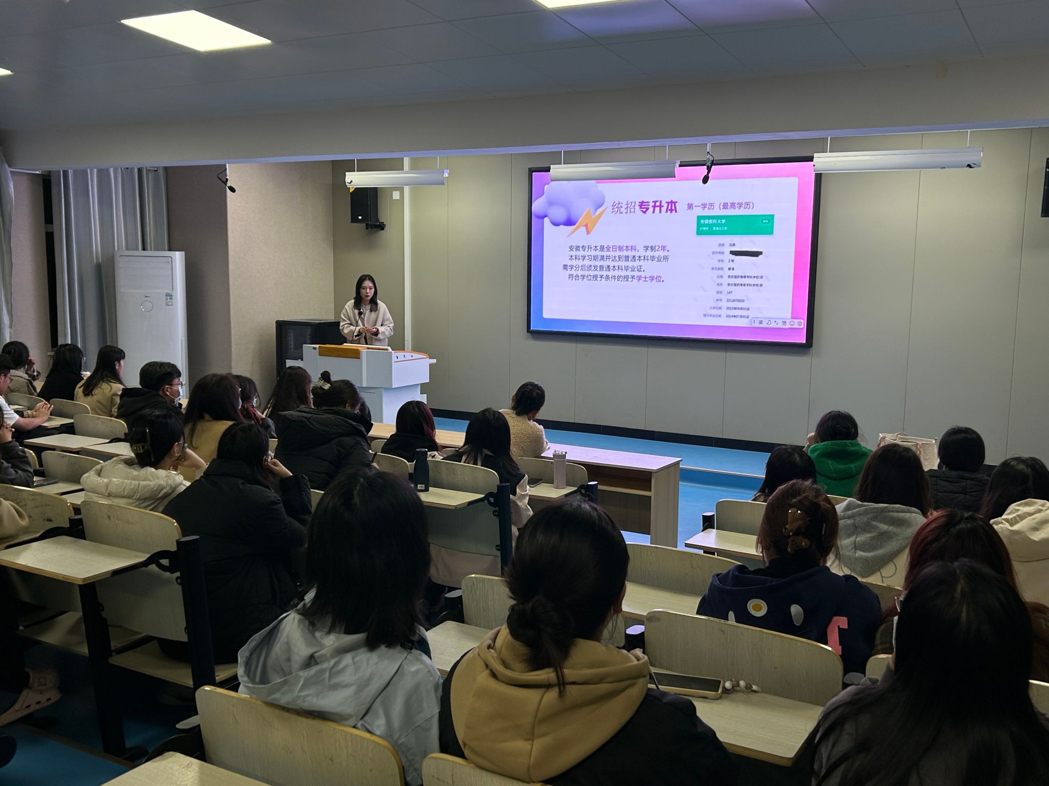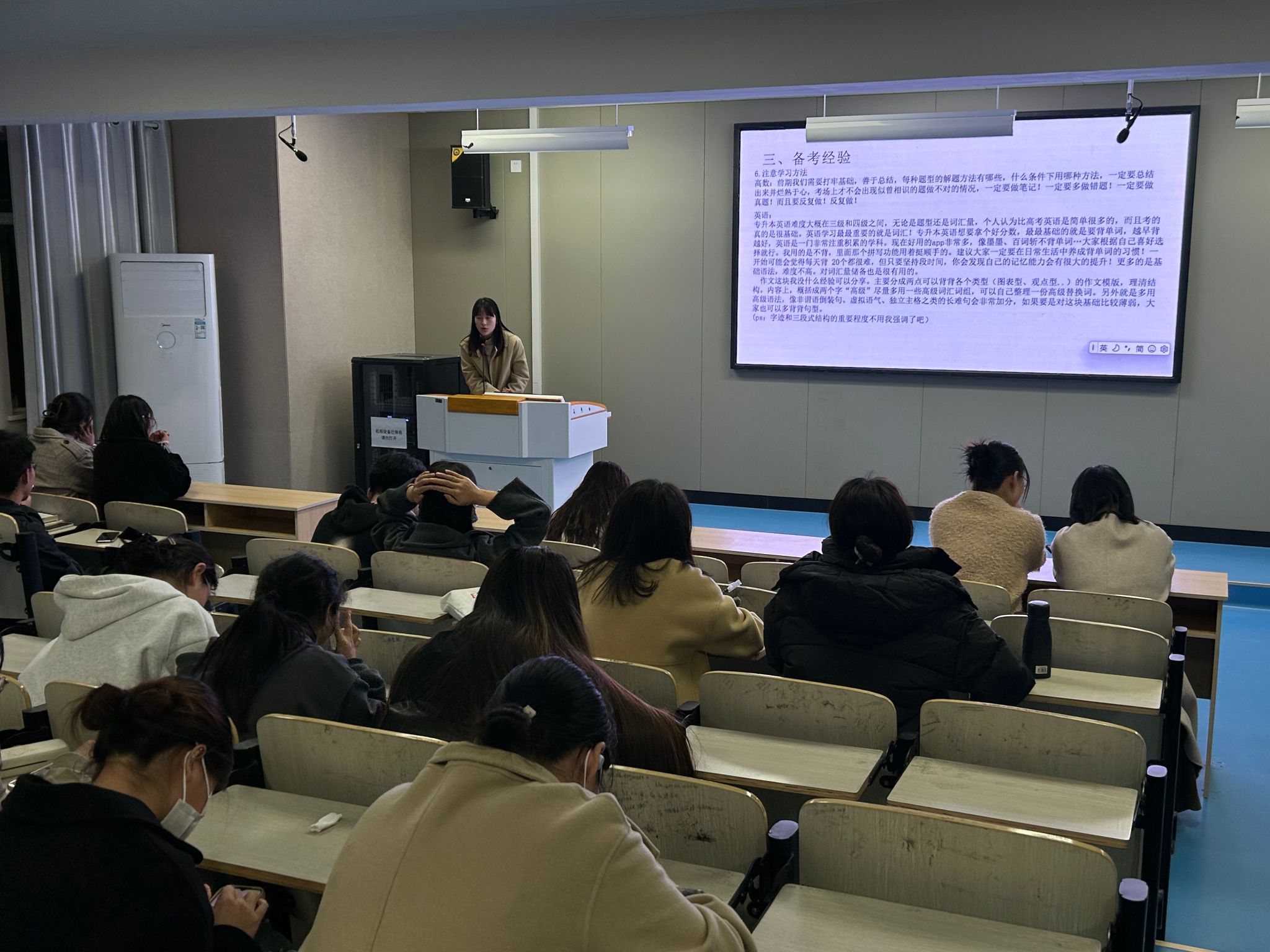 为加强学风建设,加深同学们对专升本考试的认识,做好专升本学习规划,同时选树先进典型,树立榜样力量,营造求进向上的学习氛围。2023年11月29日,临床试验科技学院专升本经验分享交流会在教学楼阶梯八教室举行,临床试验科技学院团总支书记刘双虎出席活动,学院意向专升本的同学参加交流会。