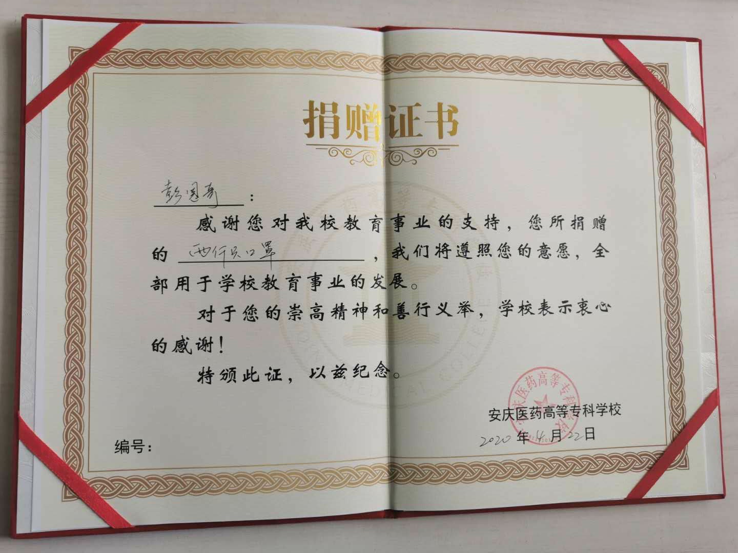 为感谢彭恩奇同学的义行善举,学校特地颁发捐赠证书。彭恩奇同学表示,作为学生骨干以及入党积极分子,他在面对疫情时,更应该表现出带头作用。在即将离开学校之际,他希望尽己之力,回报学校老师,以感谢在校期间各位老师在他成长路上给予的帮助和支持。