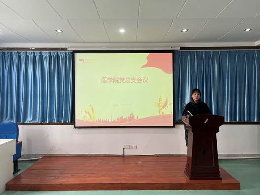 2022年2月16日,医学院党总支在外科手术观摩室召开新学期第一次全体党员大会,党总支全体党员参加,会议由医学院党总支书记、院长刘燕主持。