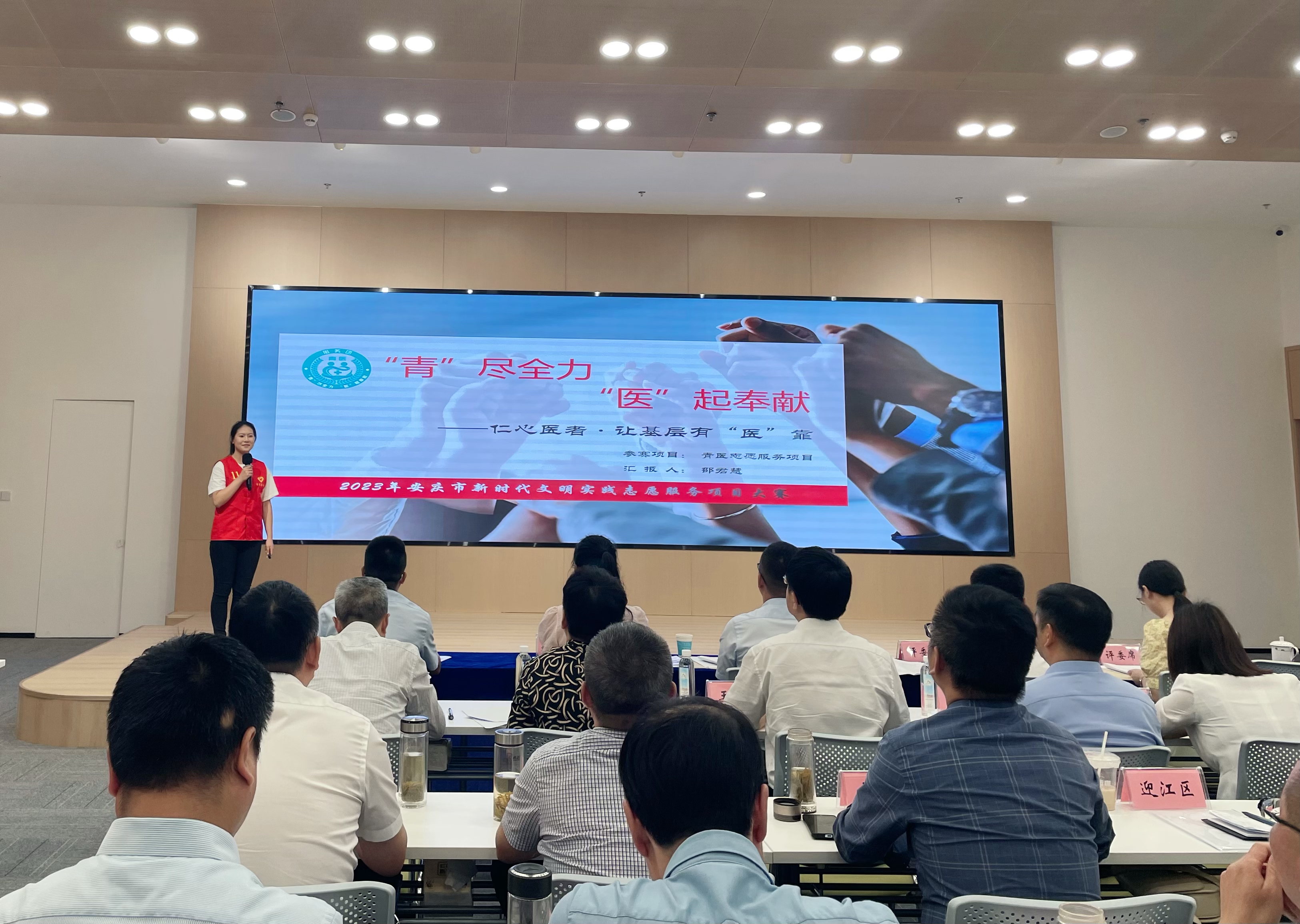 9月14日下午,2023年安庆市新时代文明实践志愿服务项目大赛暨展示交流活动在潜山市新时代文明实践中心举行,今年会“青医”志愿服务队打造的“青尽全力,医起奉献”志愿服务项目代表团市委参赛。团队成员赛前积极准备、认真组织、努力谋划,最终从全市16支参赛队伍中脱颖而出,取得二等奖的好成绩!