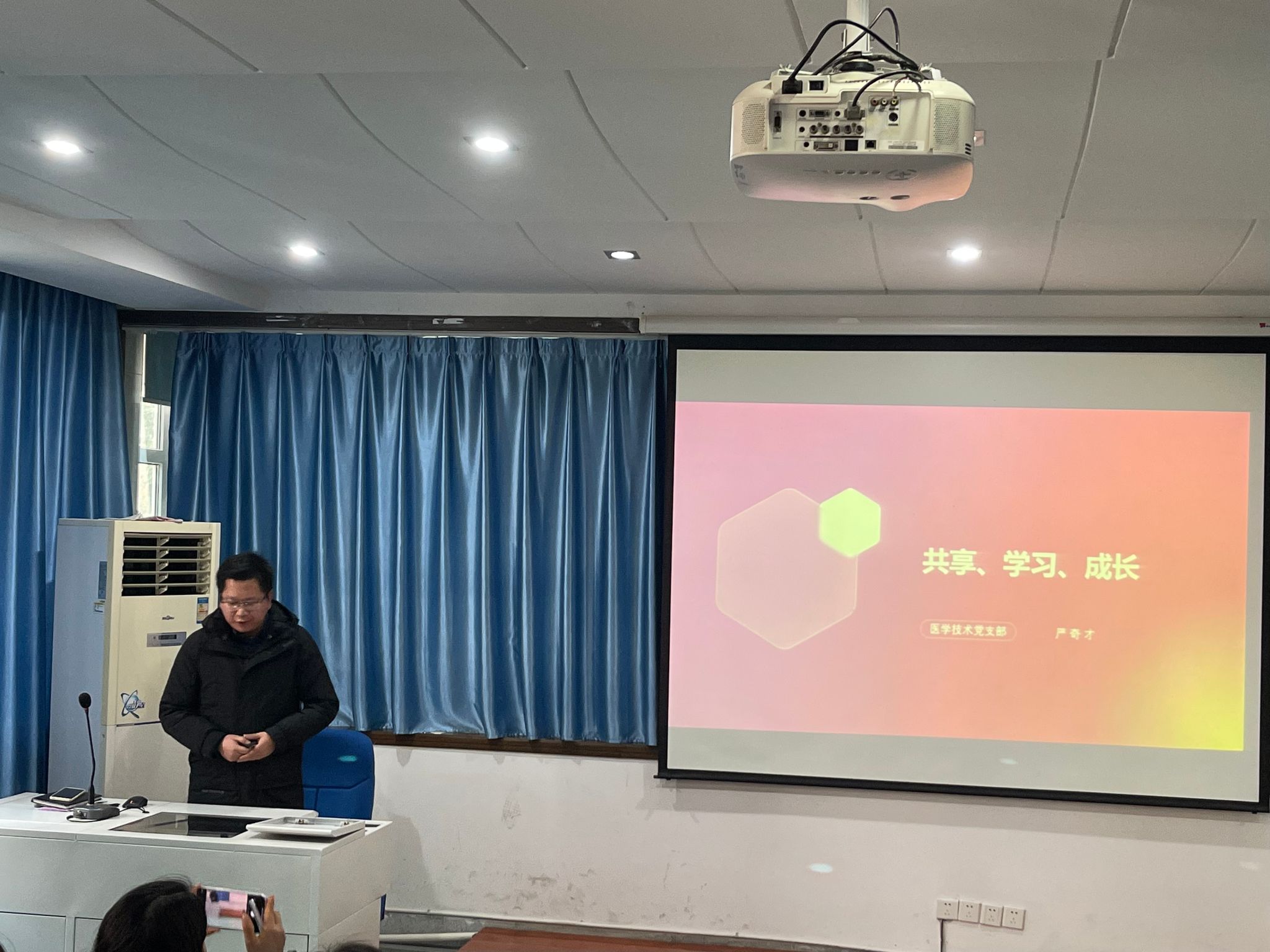 为进一步推动主题教育走深走实,形成广泛参与、普遍开讲的生动局面,2023年12月20日,医学院党总支在外科手术观摩室组织开展“普通党员上党课”活动,医学院全体教职工参加。