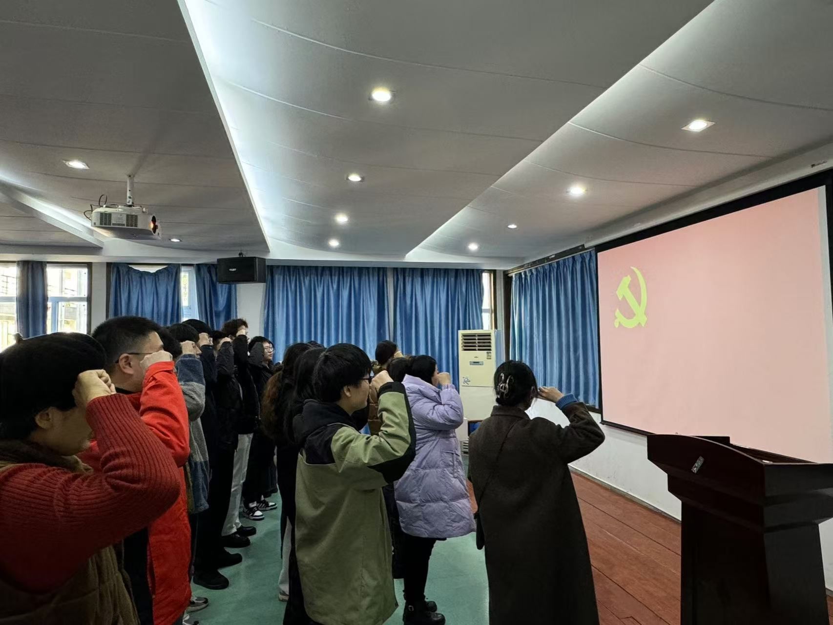随后,陈梦带领陈雨荷等14名同志进行入党宣誓,支部全体党员重温入党誓词。全体同志面向党旗,高举右拳、面对党旗庄严宣誓,铿锵有力的宣誓声表达了青年党员坚定的政治信念和矢志不渝的奋斗决心。(撰文/供图:任永东;审改:刘燕)