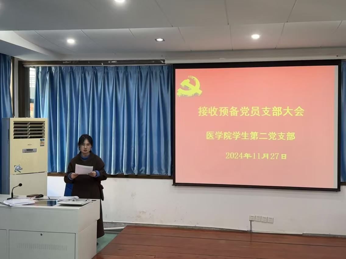 2024年11月27日,医学院学生第二党支部在外科手术观摩室召开吸收预备党员会议。大会主要讨论并决议是否吸收陈雨荷等14名同志为预备党员。支部书记陈梦主持会议,医学院学生第二支部全体党员、拟发展对象培养老师及拟发展对象参会。