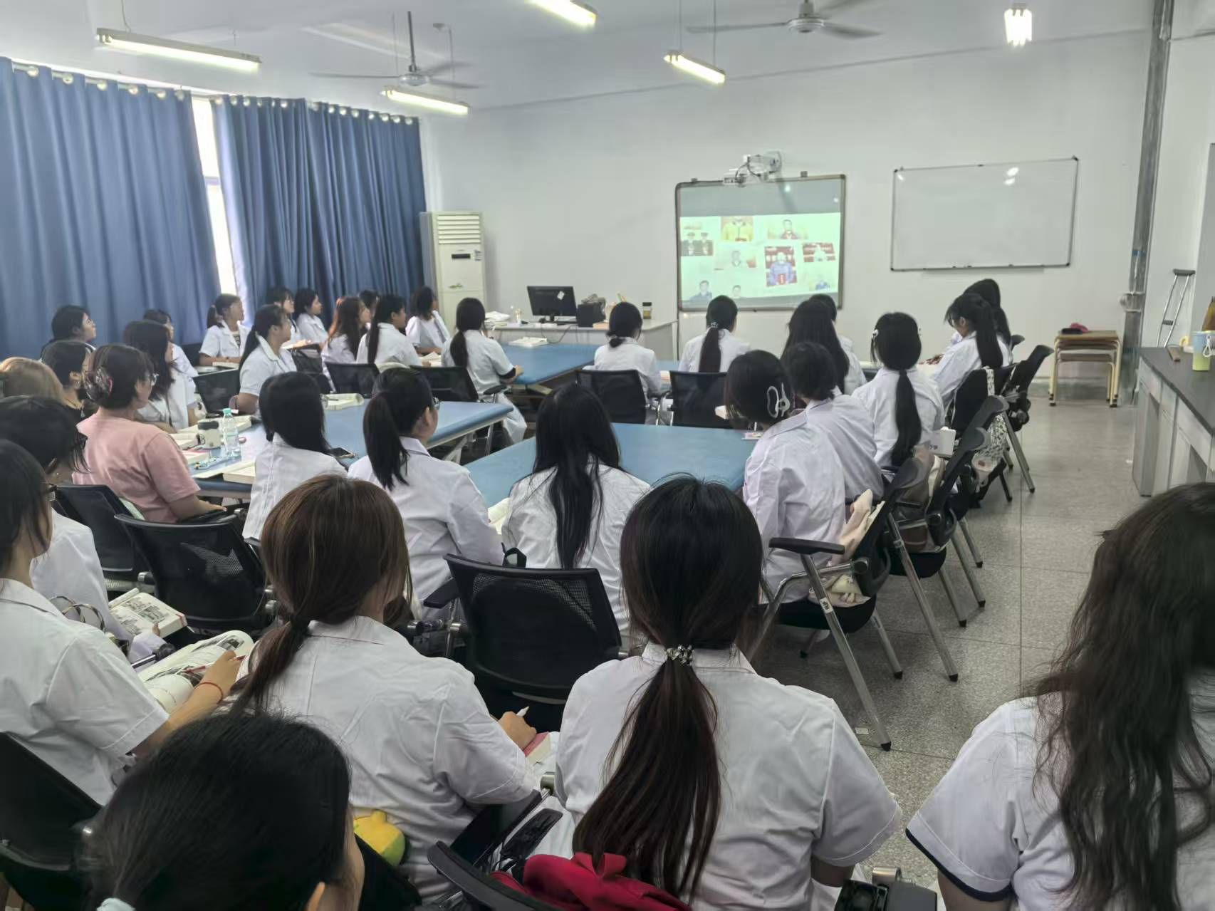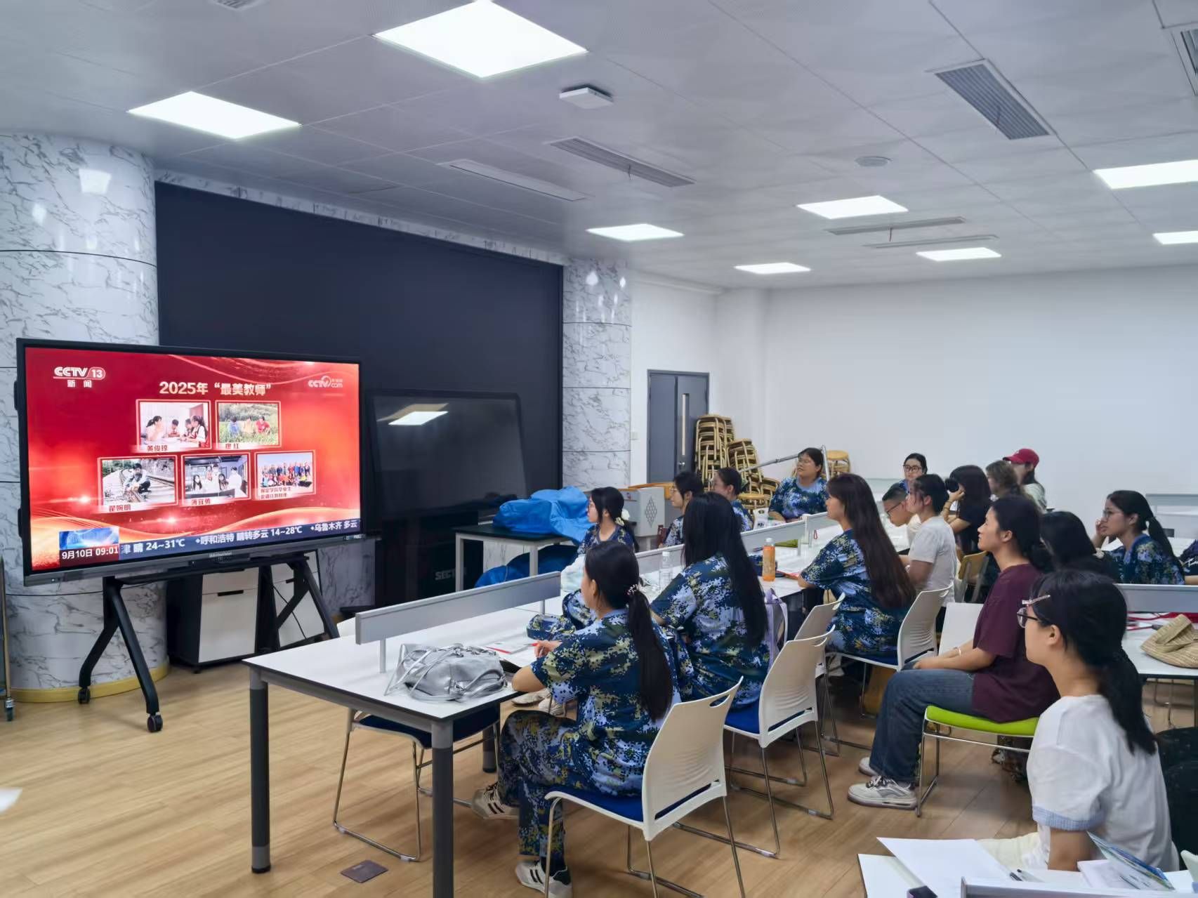 教师节当天,医学院组织二年级全体在校学生及免修军训的一年级学生集中观看了《闪亮的名字2025-最美教师发布仪式》和《讲述我的育人故事-2025年教师节特别节目》两部专题节目。节目中扎根基层的教师楷模、创新教学方法的先锋人物,以无私奉献和爱生如子的高尚品格,生动诠释了“四有”好老师的内涵,引发学子强烈共鸣。观影活动不仅是一场节日庆典,更是一堂思政与职业启蒙课。学生们通过一线教师朴实的育人故事,深刻理解了教师工作的辛劳与崇高,进一步坚定了尊师重道、报效国家的信念。