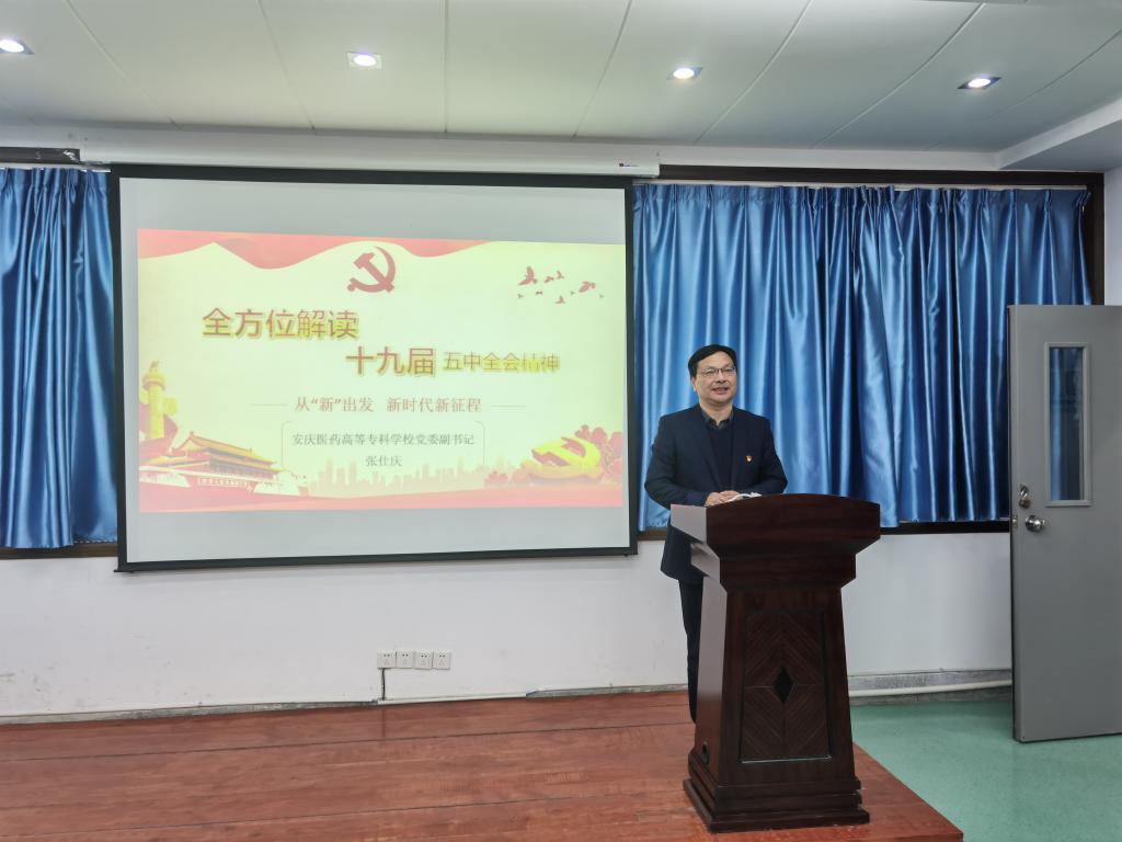 11月16日,校党委副书记张仕庆同志联系临床医学系教工支部上党课,“从‘新’出发 -- 新时代 新征程”,全方位解读中国共产党十九届五中全会精神。临床医学系教工支部全体党员老师及联系教研室全体老师、联系班级全体同学参加学习。