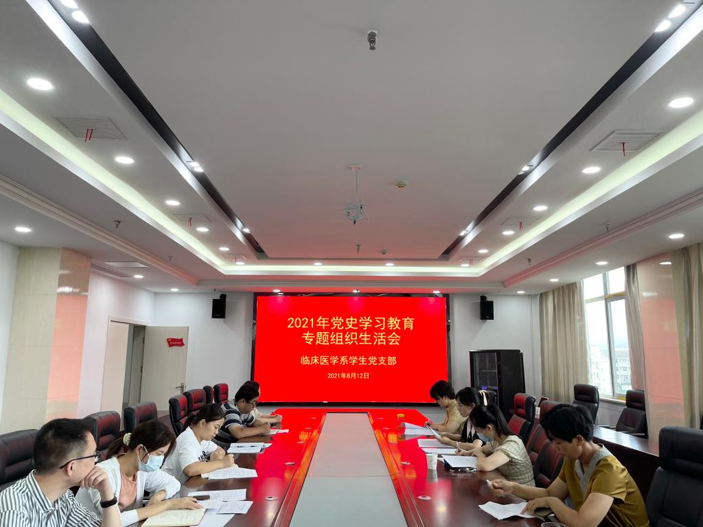按照学校党委《关于基层党组织召开党史学习教育专题组织生活会的通知》精神,8月12日,临床医学系学生党支部在图书馆六楼会议室召开2021年党史学习教育专题组织生活会,全体党员参加,临床医学系党总支书记刘燕列席会议,会议由学生党支部书记陈梦主持。