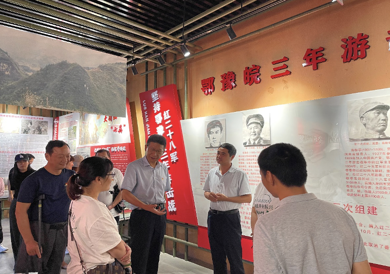 为迎接党的二十大胜利召开,庆祝中国共产党成立101周年,引领广大党员老师不忘初心、牢记使命,充分发挥先锋模范作用。7月31日,医学院党总支组织全体党员以及8名学生团员代表赴宿松县北浴乡罗汉尖革命根据地开展“为党旗添彩、为党徽增光”主题党日活动,校党委副书记、校长姚文兵作为普通党员参加。