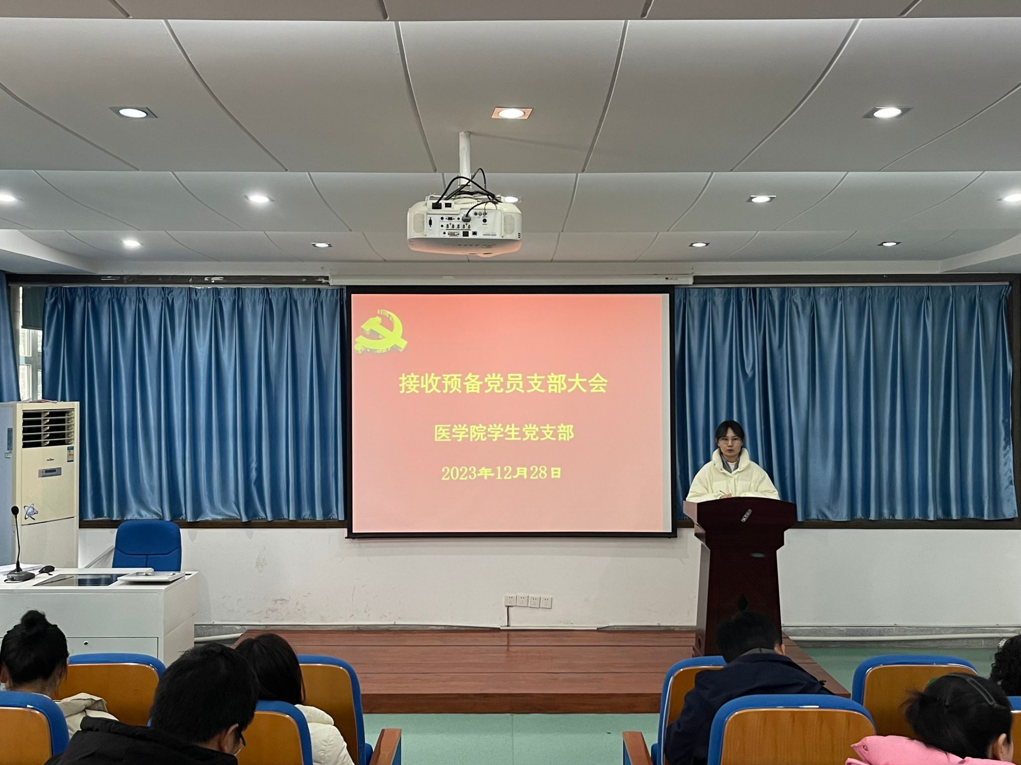 2023年12月28日,医学院学生第一第二党支部分别在党员活动室和外科手术观摩室召开吸收预备党员会议。大会主要讨论并决议是否吸收柯贤慧等16名同志成为中共预备党员。
