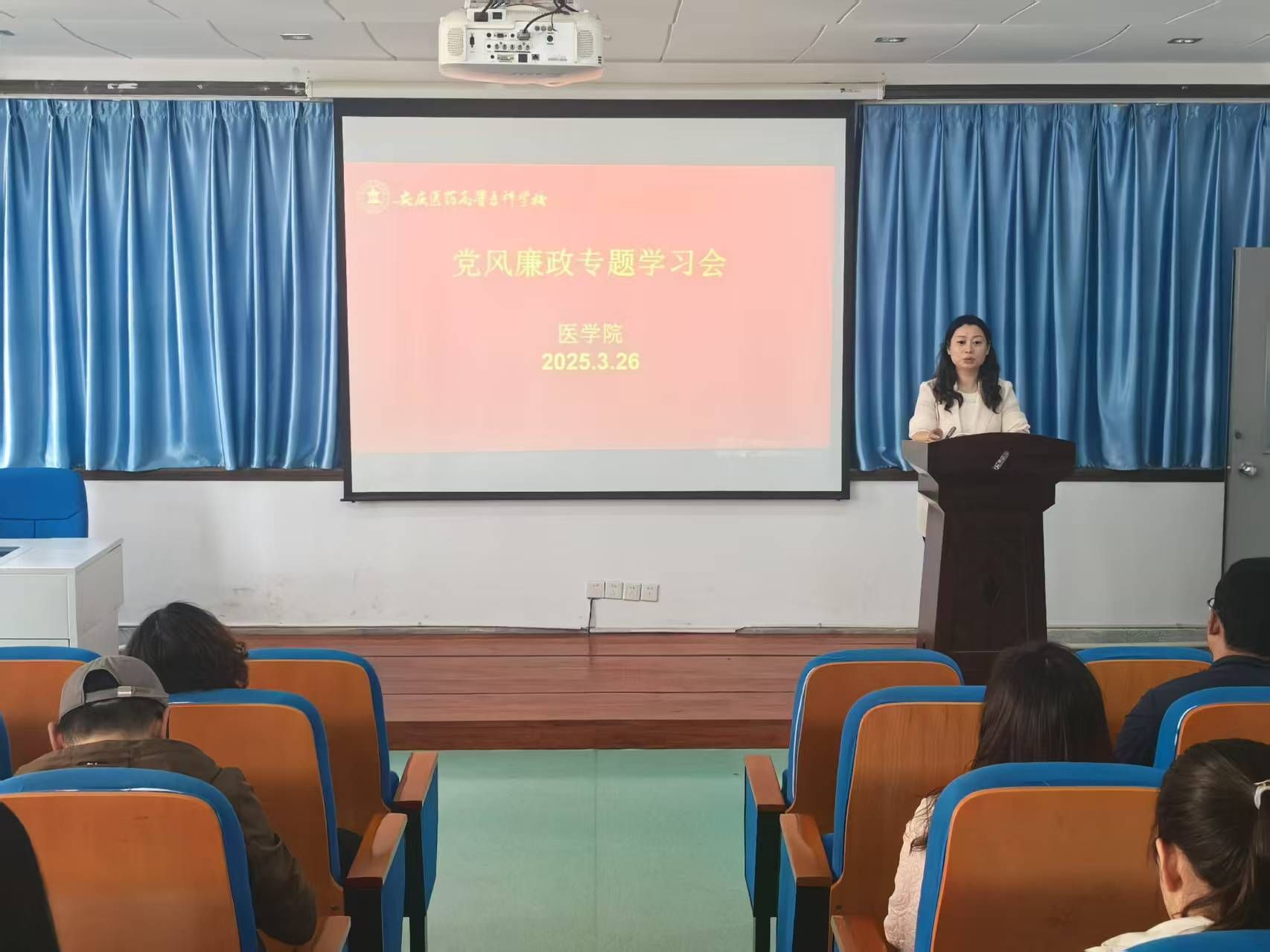 为深入宣传贯彻落实党的二十大精神,扎实推进党风廉政建设工作,2025年3月26日医学院在外科手术观摩室召开党风廉政专题学习会。党总支书记、院长刘燕主持会议并作专题辅导,医学院全体教职工参会。