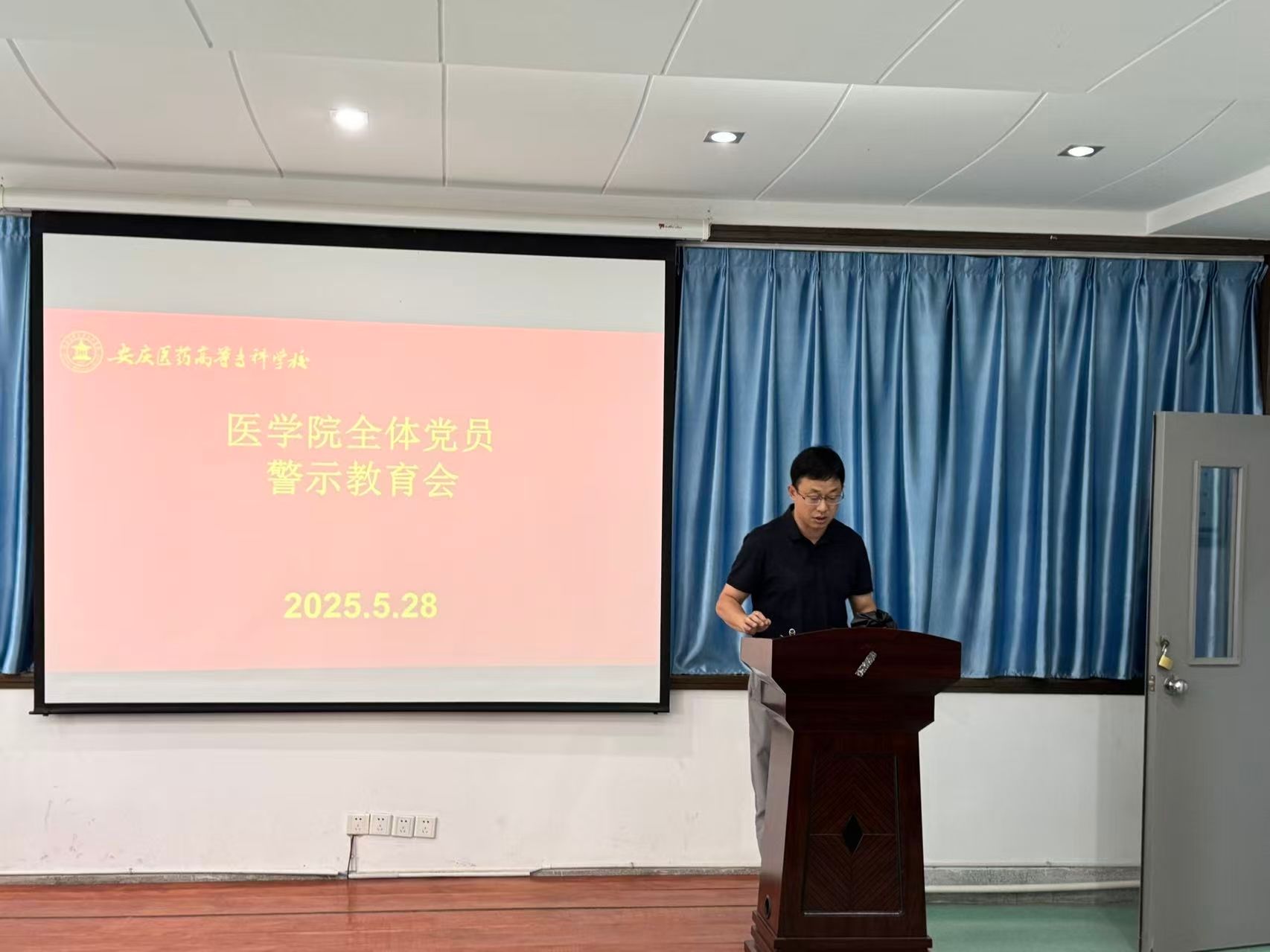 2025年5月28日,医学院党总支在外科手术观摩室组织全体党员召开警示教育会。会议由医学院党总支副书记王华庆主持,全体党员参加。
