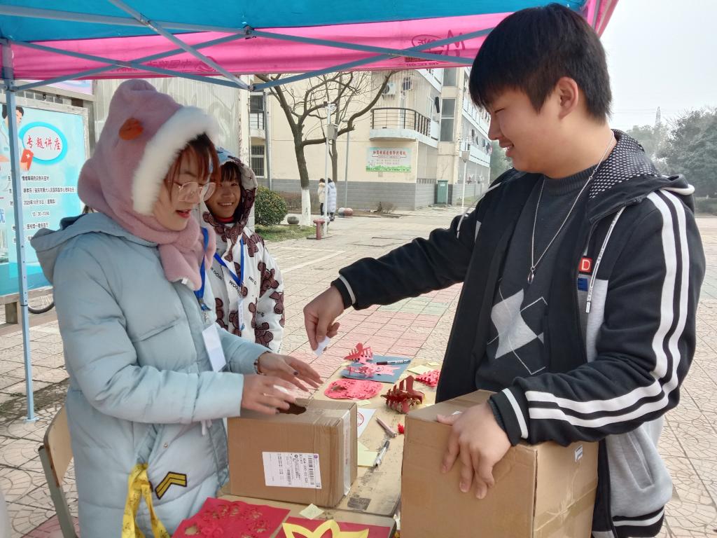 1月5日中午,同学们被食堂门口各种各样的手工作品所吸引,经工作人员耐心讲解后,有序的参与投票抽奖活动。投票过程中,同学们认真讨论春联、剪纸和灯笼等优秀作品,并和同伴分享手工制作的技巧,最后为自己心仪的手工作品投上宝贵的一票。