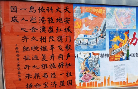 本次活动以书画作品为主要内容,活动中,学生积极报名,踊跃参与,通过认真的书写,精彩的描绘展现中国共产党这百年来的光辉历程。苍劲的毛笔字展现中国共产党带领中国人民推翻“三座大山”,成立新中国的喜悦,推动中国改革开放,社会主义现代化进程的欢天喜地;而形象生动、惟妙惟肖的水彩画则展示了百年来中国在航天、交通、经济等各个领域取得的一个又一个重大飞跃。