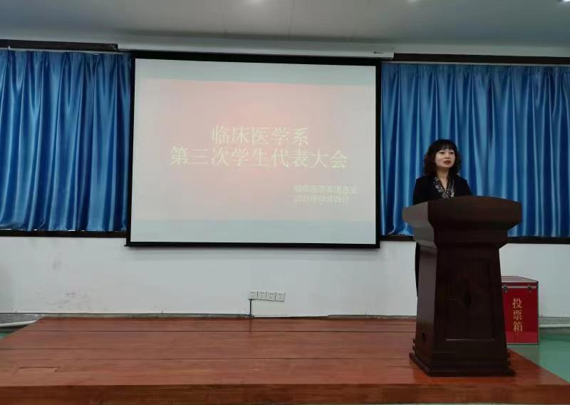 2021年10月29日,临床医学系第三届学生代表大会在外科手术观摩室召开。临床医学系党总支书记刘燕、团总支书记王珍珍、团总支宣传委员孙宁宁,以及60余名学生代表参会。