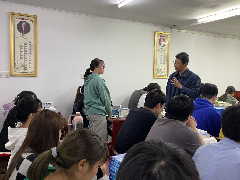 姚文兵为同学们细心讲解疫情防控的相关知识,并叮嘱同学们要关注自身心理健康,做好压力调整,如果有需要,可以联系校心理咨询中心或通过学校线上心理平台缓解情绪压力。在交流过程中,当学生表现出对今后就业方向的迷茫时,他为学生分析目前国内各级城市医疗现状和就业缺口,鼓励学生调整就业心态,关注国家政策导向,积极服务基层医疗,不断提升自己的专业水平和学历水平。