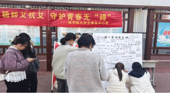 活动分两个时段开展,吸引了数百名学生参与互动。现场使用的防艾海报和暖心寄语展板将在活动后移至“一站式”学生社区进行展览,持续扩大科普覆盖面,让防艾理念深入人心。既让学生系统掌握防艾核心知识,提升了自我防护技能,更培育对感染者的包容心态和社会责任感,为医学生未来临床工作奠定了“零歧视”的职业理念。