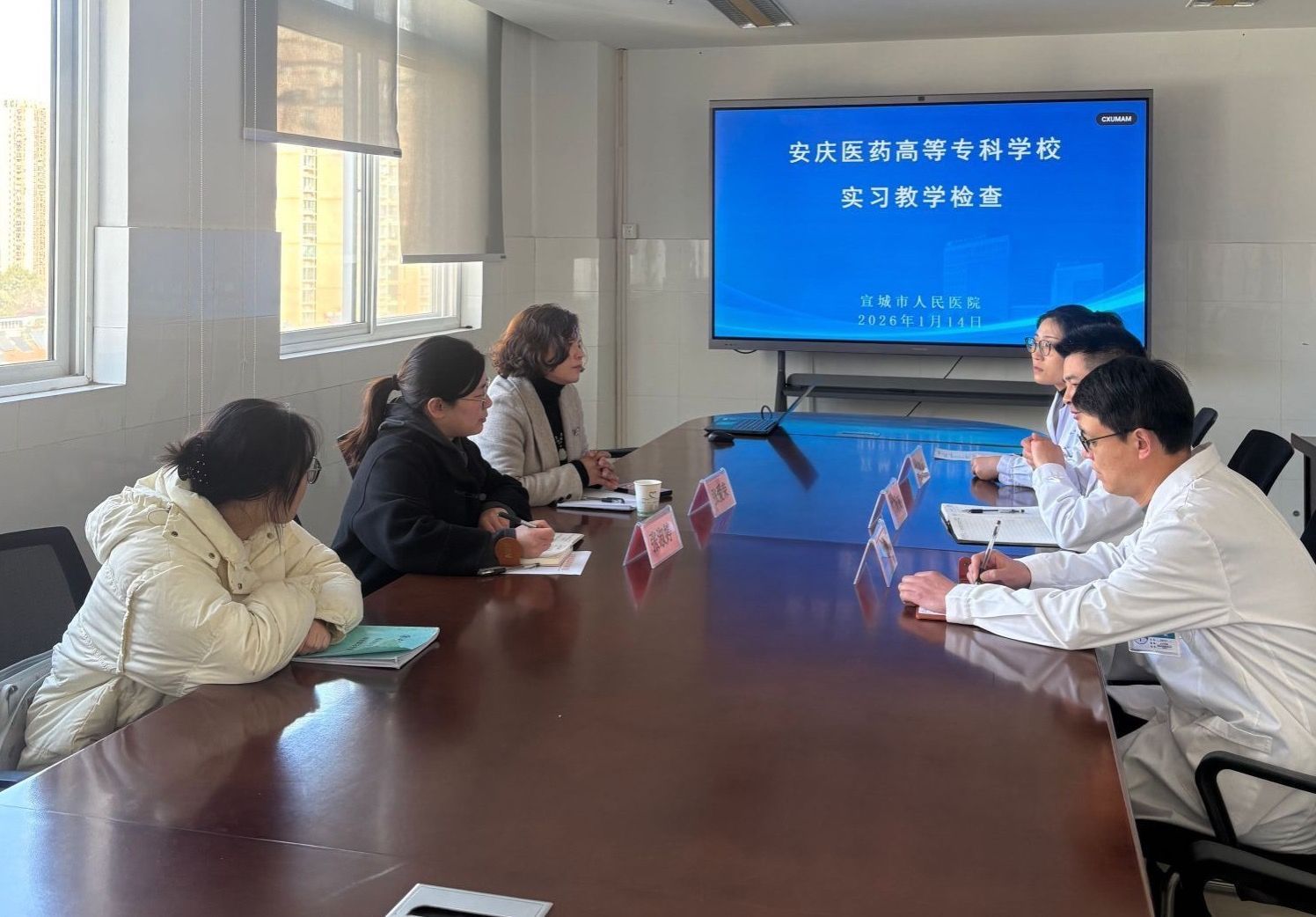 2026年1月14日至15日,医学院副院长张爱荣带队先后赴宣城市人民医院、德驭医疗马鞍山总医院、铜陵市立医院开展实习中期检查及访企拓岗专项活动。此次走访旨在深化校企合作,强化实习质量监控,并为毕业生拓展就业通道,助力学校人才培养与地方医疗卫生事业发展深度融合。