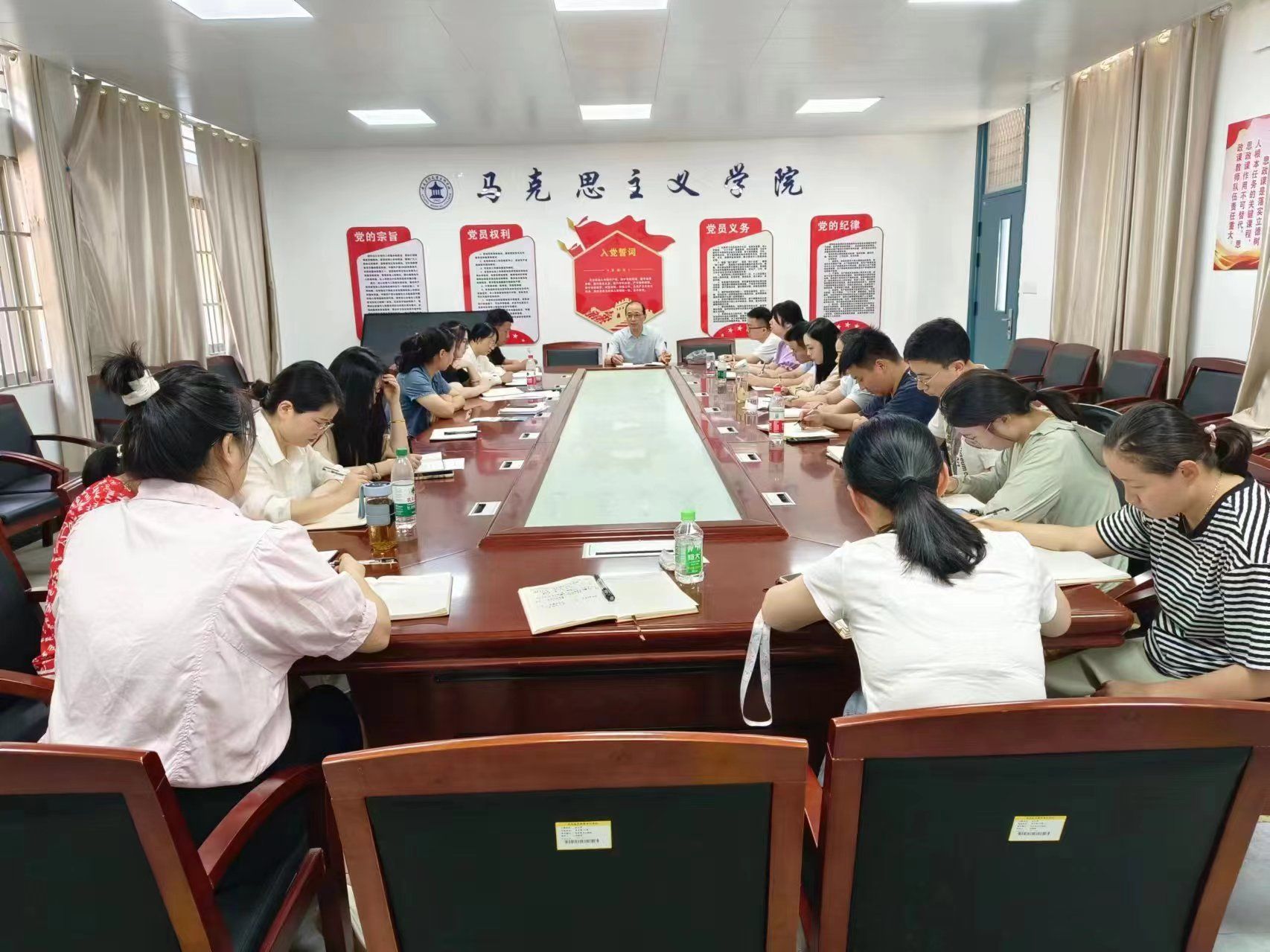 7月9日上午,马克思主义学院党总支在一楼会议室召开党员学习会。党总支书记陆胜利主持学习会,学院全体党员教师参加了会议。