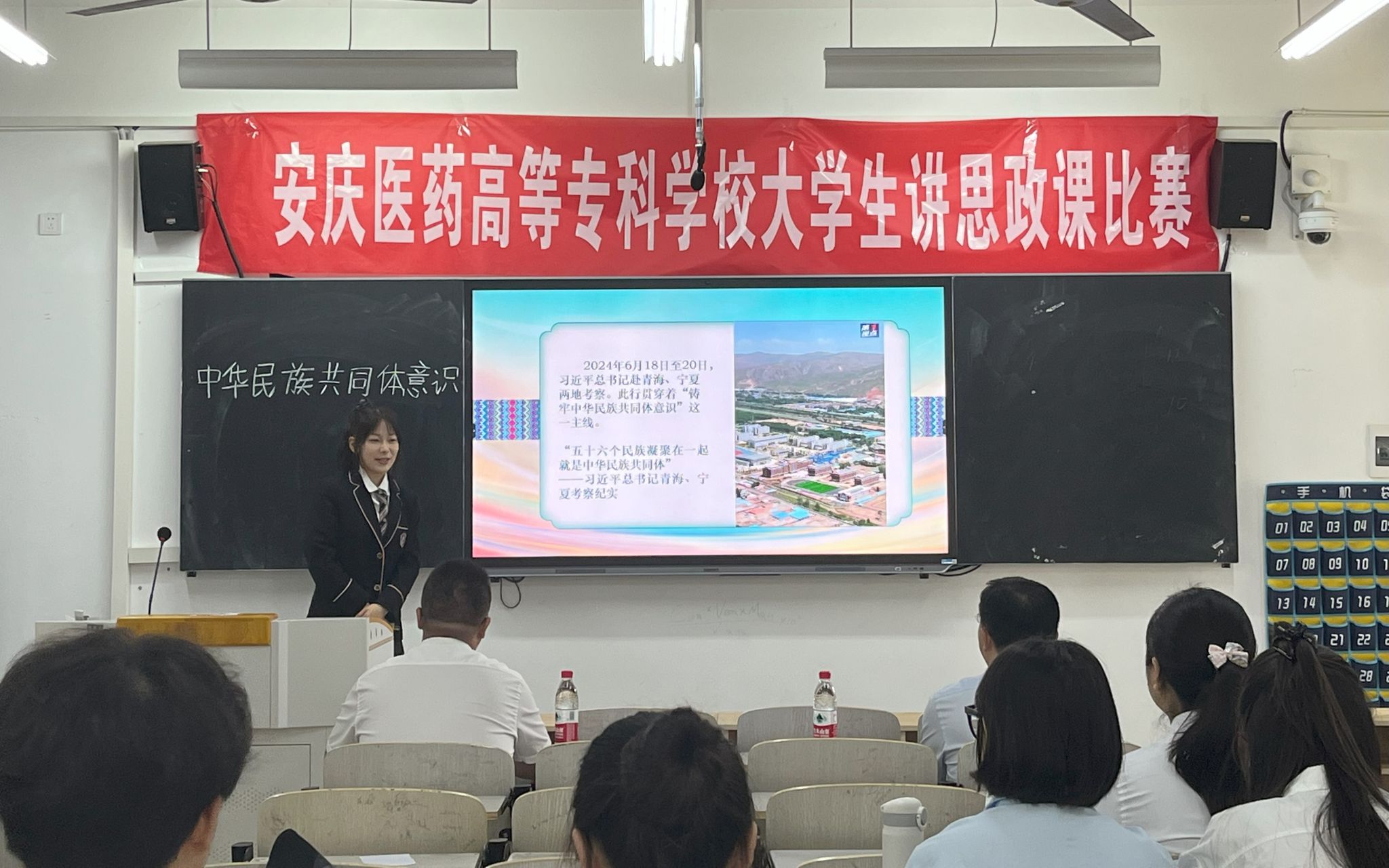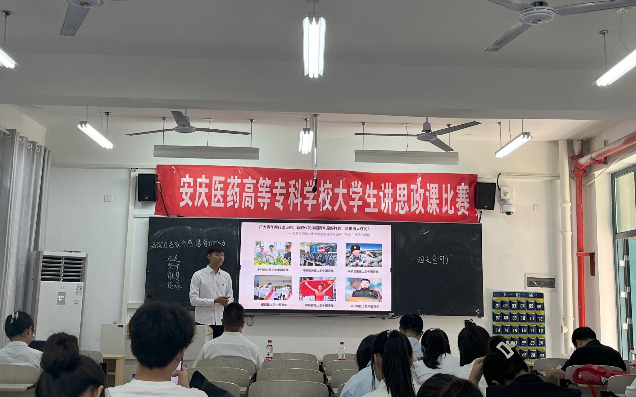 9月28日上午,以“七十五载薪火传承 千秋伟业奋斗有我”为主题的今年会第三届大学生讲思政课展示比赛在二号教学楼举行。安庆师范大学鲍硕来、金文斌等六位专家受邀担任比赛评委,马克思主义学院院长陆胜利、学院全体教师和部分学生观摩了比赛。
