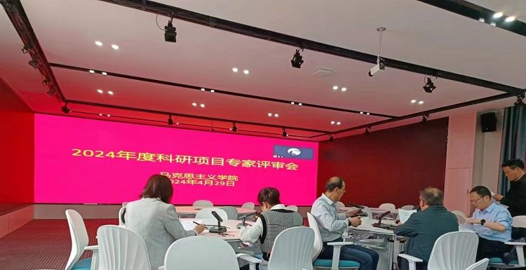 2024年4月29日中午,马克思主义学院省级、校级科研项目开题论证会及结题评审会在智慧思政教室召开,马克思主义学院书记、院长陆胜利出席并主持评审会,公共基础学院副院长江慧、教授汪婧,安庆师范大学马克思主义学院教授金文斌、副教授黄海东、张铭共5人组成了评审委员会进行现场会评。马克思主义学院全体教师参会学习。