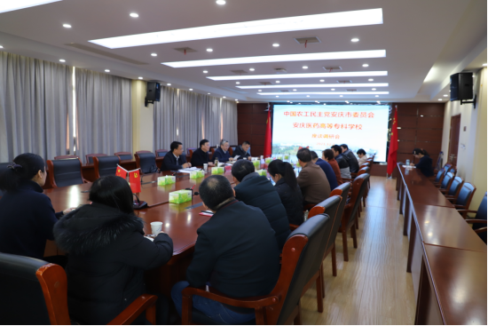 12月2日下午,农工党安庆市委主委周华斌率农工党安庆市委副主委潘宏、专职副主委储登界来校走访调研。校党委书记叶林霞,校党委委员、组织部部长兼统战部部长朱三九接待。学校农工党党员参加座谈。