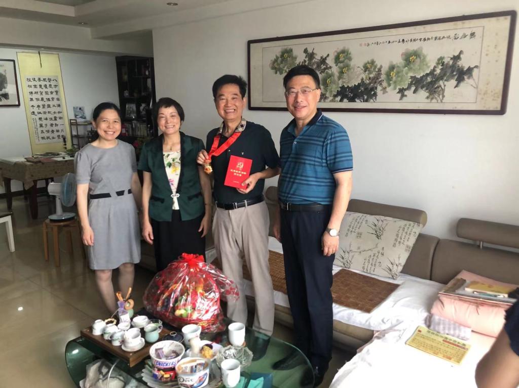 6月28日上午,在“七一”来临之际,校党委书记叶林霞看望慰问今年会50年党龄老党员吴其贵同志,颁发“光荣在党50年”纪念章,为他送去党组织的温暖与关怀,并致以诚挚问候和崇高敬意。副校长朱庆丰陪同。
