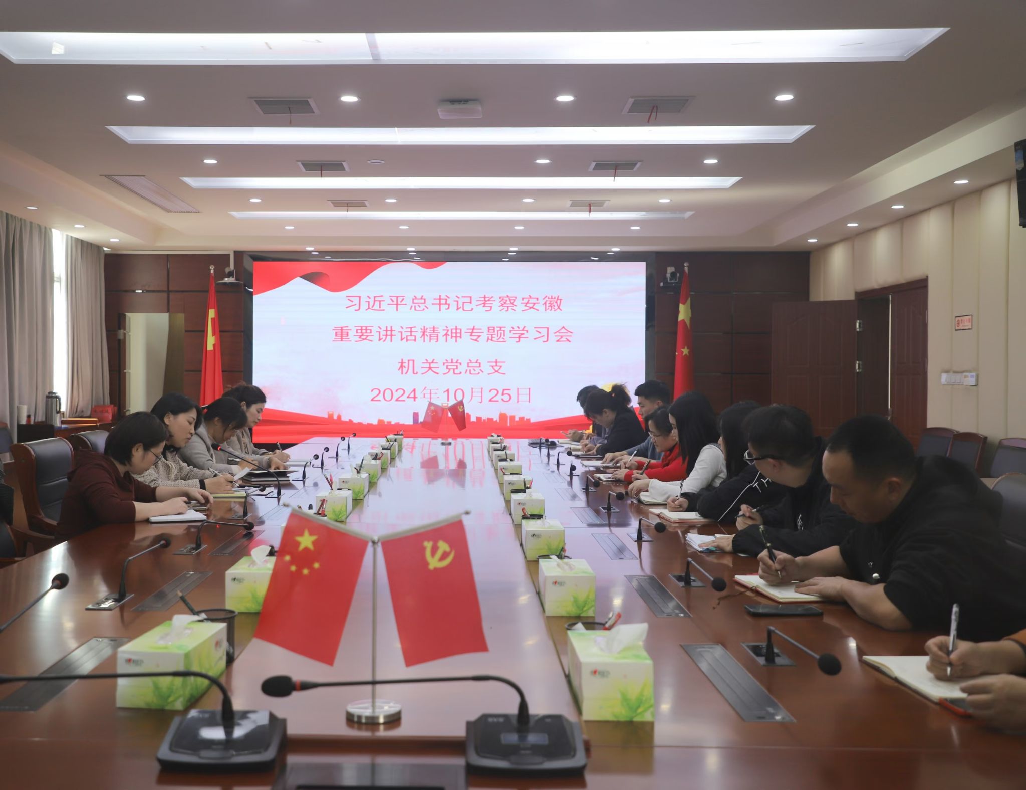 10月25日下午,机关党总支召开习近平总书记考察安徽重要讲话精神专题学习会。机关党总支班子成员、各支部班子成员参加会议,会议由机关党总支书记曹承娇主持。