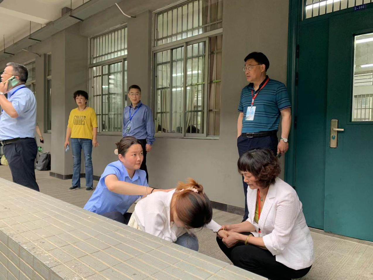 考试期间,一考生突发身体不适。叶林霞亲切关心,并安排及时送医。该考生得到妥善安置。