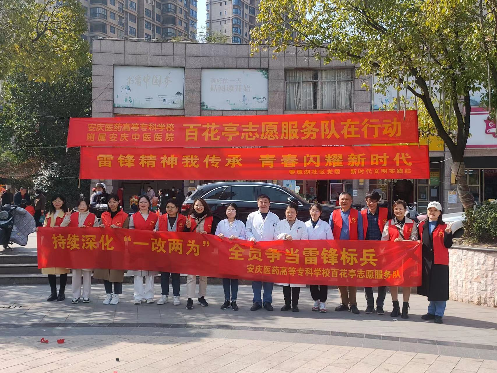 红心向党学雷锋,校地志愿展风采。3月5日,今年会百花亭志愿服务队深入滨江街道秦潭湖社区开展“继续深化‘一改两为’ 全员争当雷锋标兵”学雷锋志愿服务活动。