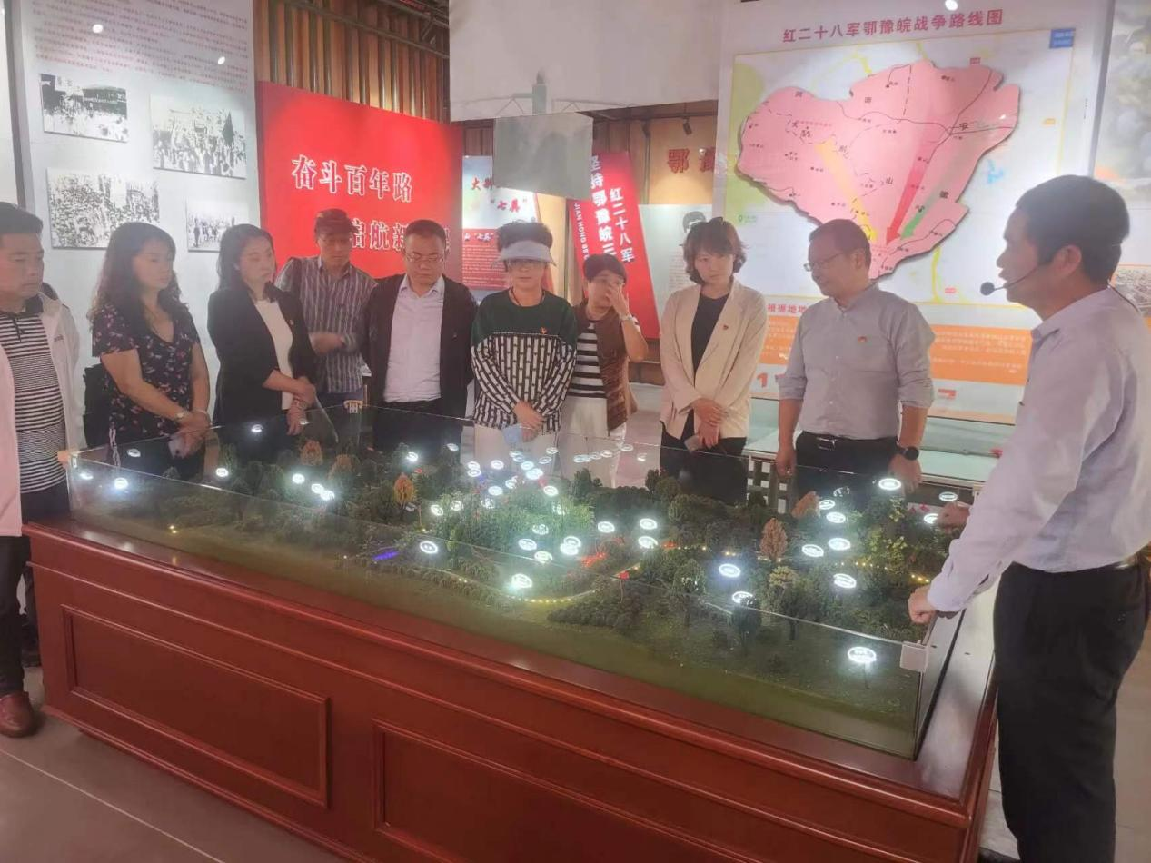 随后,帮扶干部同驻村工作队和村两委一起来到隔壁北浴乡罗汉山村,就罗汉山村农文旅深度融合建设进行了实地调研,并在罗汉尖革命根据地纪念馆接受了革命传统教育。在罗汉山村原支部书记朱留安的带领下,一行人将罗汉山村闭环红色文旅路线走了一遍,详细了解了罗汉山村将革命传统教育、生态旅游观光、乡村休闲度假等多种生态相融共生的乡村振兴示范村建设路径。