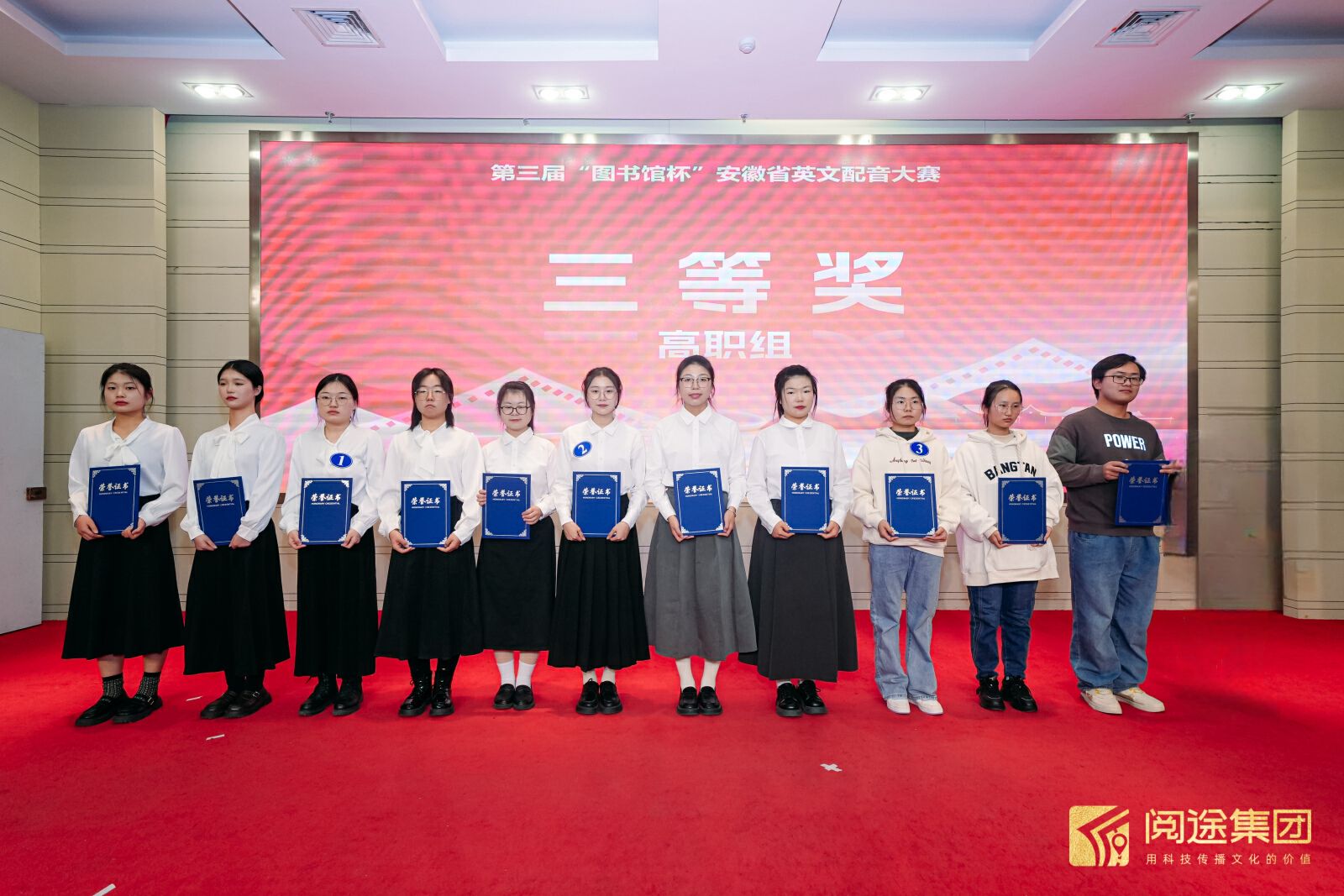 2023年12月24日,第三届“图书馆杯”安徽省英文配音大赛总决赛在安徽省图书馆落下帷幕,此次比赛由安徽省高等学校图书情报工作委员会、安徽省高等学校数字图书馆、安徽省图书馆学会联合主办,“阅途”文化集团承办。