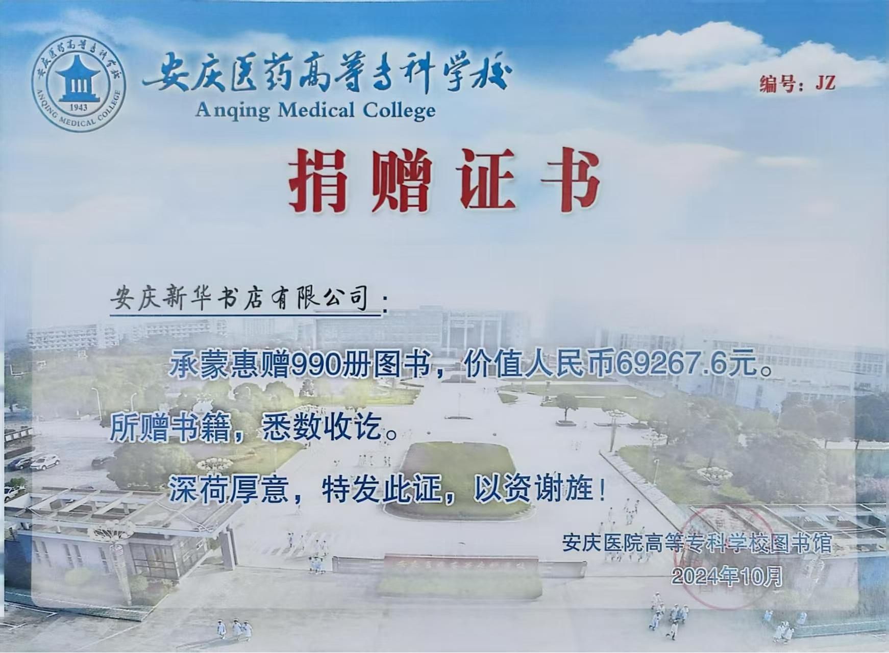 近日,安庆市新华书店有限公司向校图书馆慷慨捐赠了包括文学、医药卫生、生物科学、哲学宗教等多个领域的图书,共计444种,990册,总价值高达69267.60元。