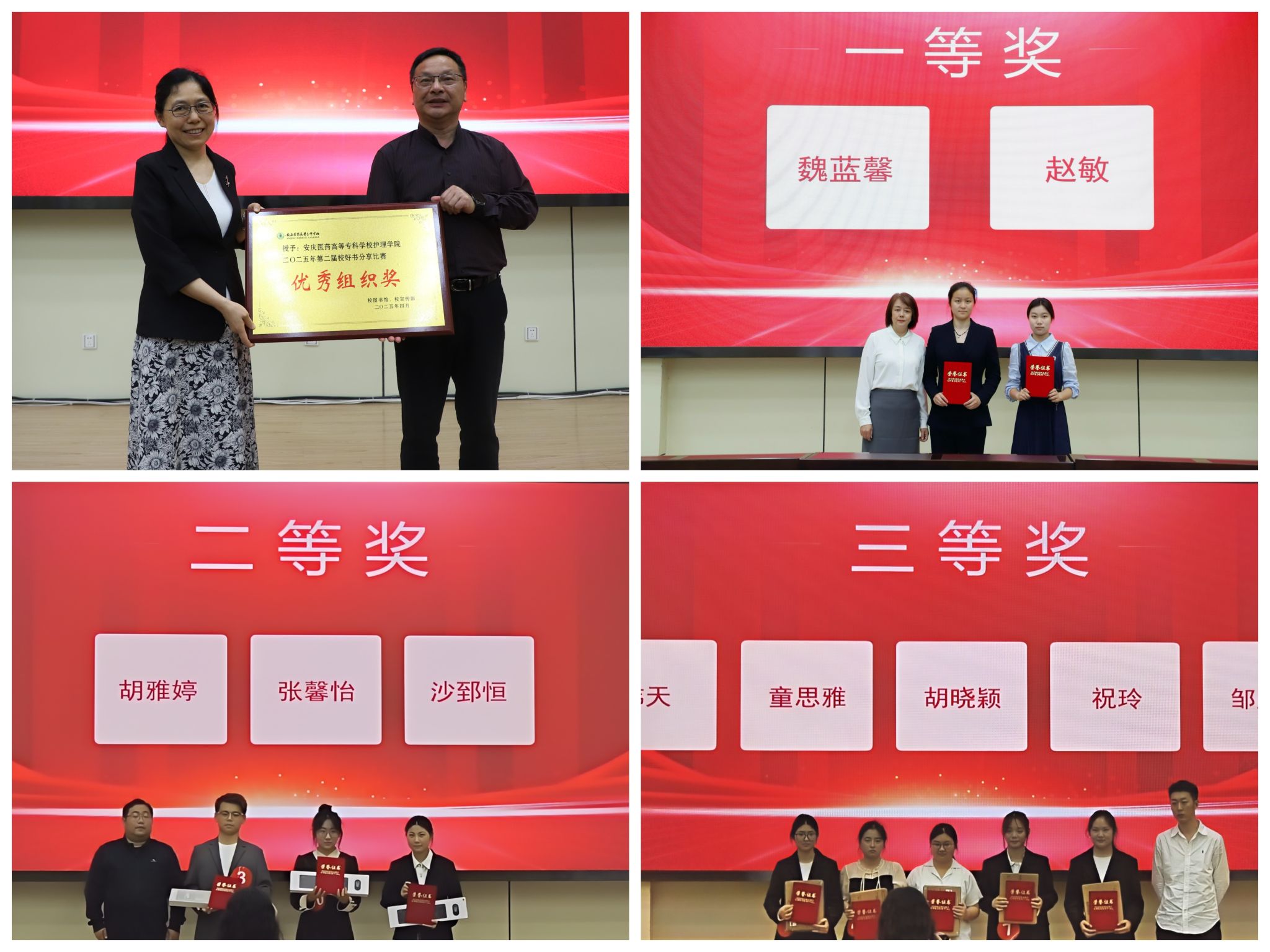 最终,魏蓝馨、赵敏两位同学拔得头筹,荣获一等奖,其余八位同学分获二、三等奖。护理学院荣获最佳组织单位奖,护理学院教师何薇、公共基础学院教师刘琦荣获“优秀指导教师奖”。比赛结束后,举行了隆重的现场颁奖仪式。张仕庆为护理学院颁发“优秀组织奖”,护理学院院长到场领奖。