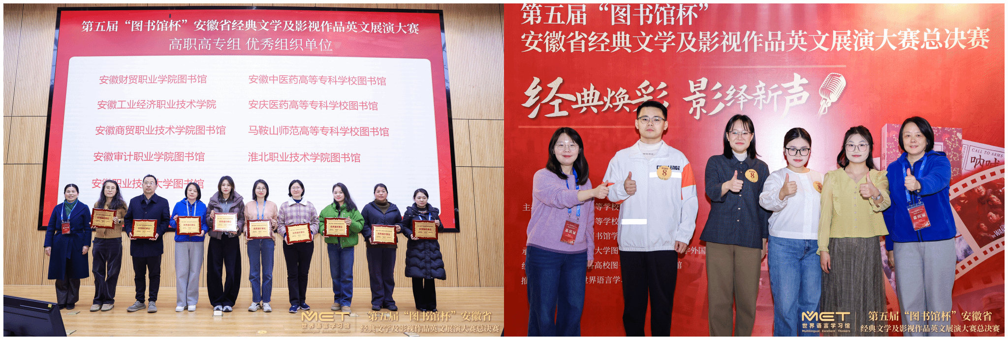 近日,第五届“图书馆杯”安徽省经典文学及影视作品英文展演大赛现场总决赛在安徽建筑大学徽韵楼报告厅圆满落幕。此次大赛由安徽省高等学校图书情报工作委员会、安徽省高等学校数字图书馆、安徽省图书馆学会联合主办,阅途文化集团(MET世界语言学习馆)承办,全省各高校图书馆、公共图书馆联动组织。