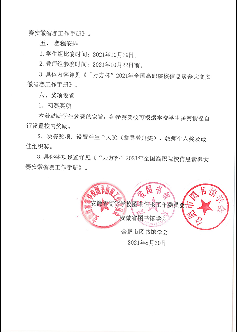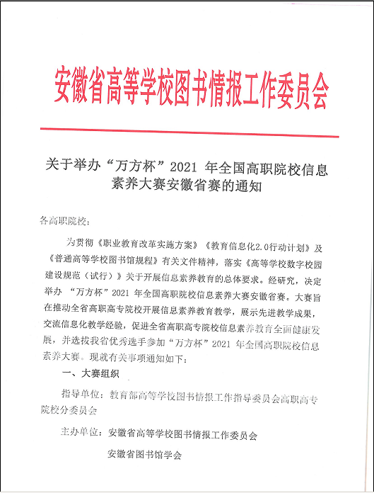 关于举办“万方杯”2021年全国高职院校信息素养大赛安徽省赛的通知