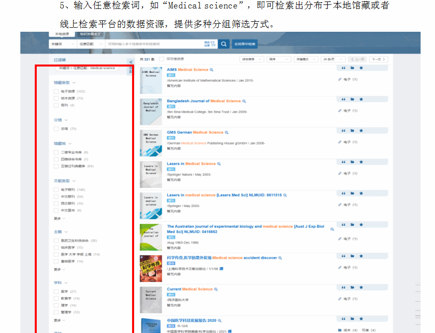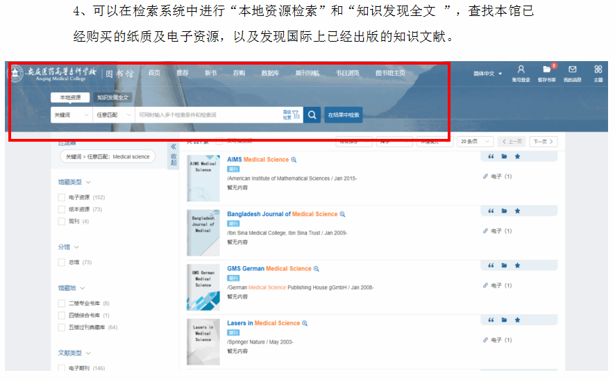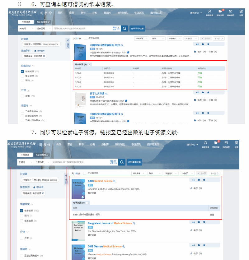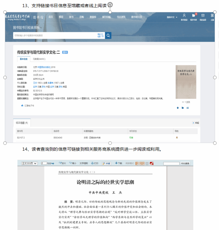提供便捷的馆藏纸质资源和电子资源访问途径,用户无需安装客户端,可访问学校图书馆订购的各类纸质资源与电子资源,实现一站式检索或下载服务。