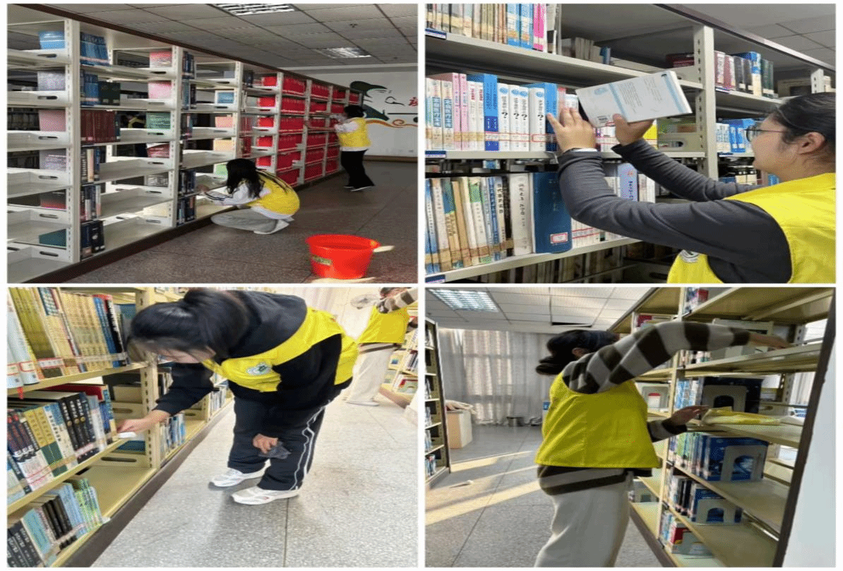为践行“奉献、友爱、互助、进步”的志愿服务精神,在劳动中培养社会责任感,提升实践能力,2024年11月12日下午4点,24级护理(专科)4班的20名同学在图书馆的指导下,开展了一次富有成效的志愿服务活动。