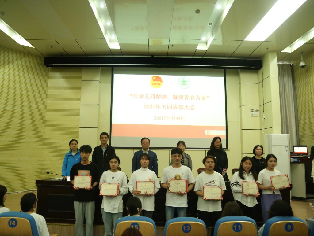 为深入贯彻落实习近平总书记在党史学习教育动员大会上的重要讲话精神和共青团中央《关于在全团开展“学党史、强信念、跟党走”学习教育的通知》精神,弘扬和传承“五四”精神,表彰先进,树立典型,以优异成绩迎接建党100周年,2021年4月29日下午,校团委在学术报告厅举行了“传承五四精神,凝聚青春力量”2021年五四表彰大会。校党委书记杨金奎、各系党总支书记、校团委书记,各系党总支副书记、团总支老师以及团员青年代表150余人参加。