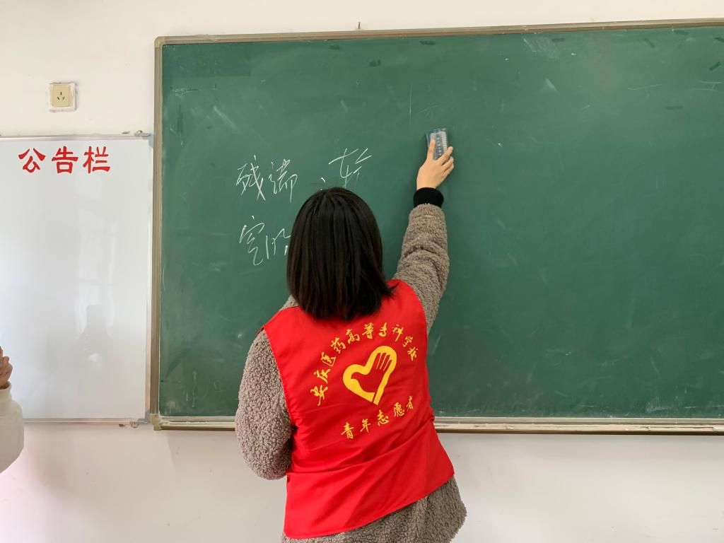 活动开始前,志愿者们携带提前准备的清洁工具来到教学楼前集合,然后自觉开展了清洁校园活动。志愿者们的身影穿梭在教学楼的每一个角落,一次次弯腰拾起地上的纸屑、认真清理每一间教室的垃圾、细心擦拭黑板和课桌椅。最终,教学楼在志愿者们的共同努力下教学楼焕然一新。活动结束后,志愿者们在教学楼前合影留念,每张脸上都露出了开心的笑容。