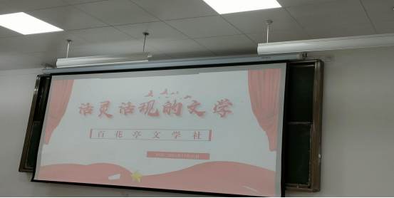 百花亭文学社在第九阶梯教室举行了以“活灵活现的文学”为主题的校园活动。活动主题为《经典名句猜猜乐》引用各种文学,小说作品中的名句,名言来让同学们猜作品名称,加深对这个作品的印象。最是书香能致远,为提高同学们对文学的热爱,本次活动培养了学生们的阅读兴趣,让同学们深刻了解到文字之美。