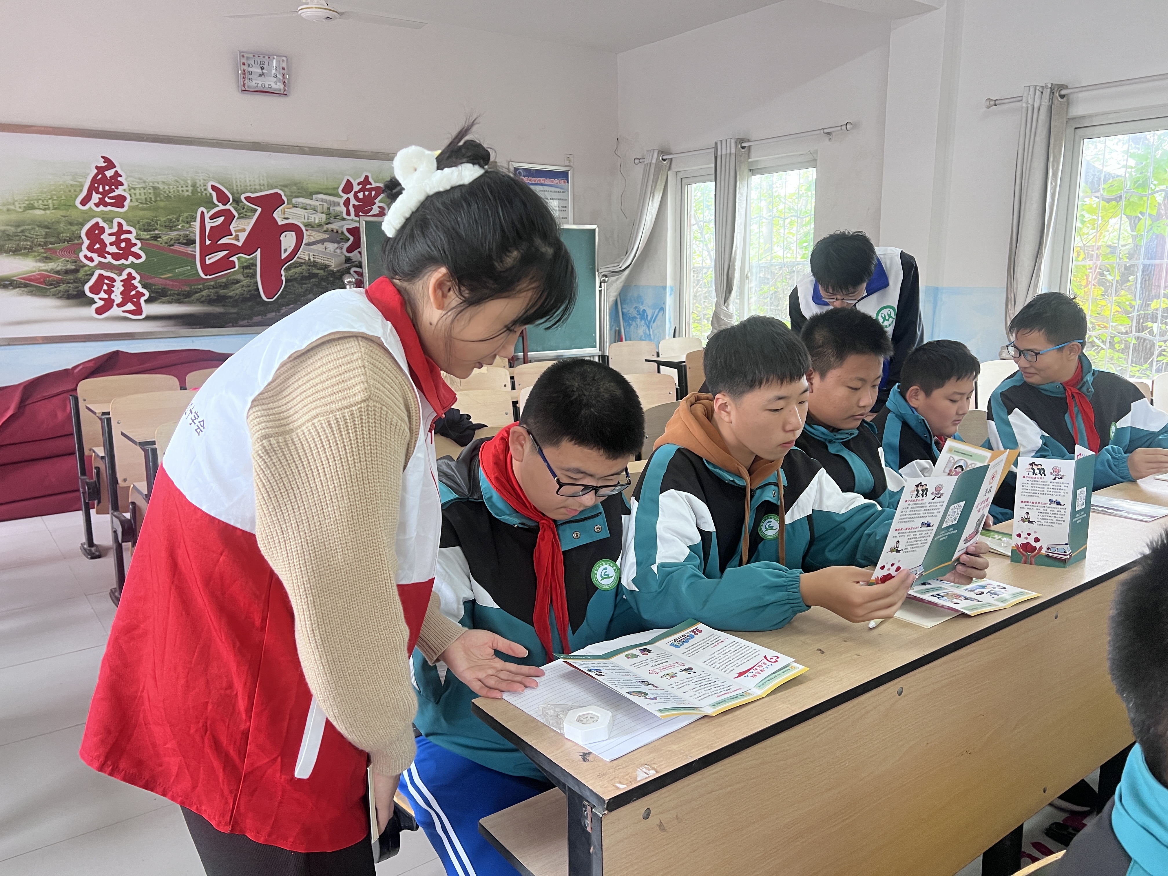 宣讲结束后,今年会教师党员带领学生志愿者开展健康宣教志愿服务。
