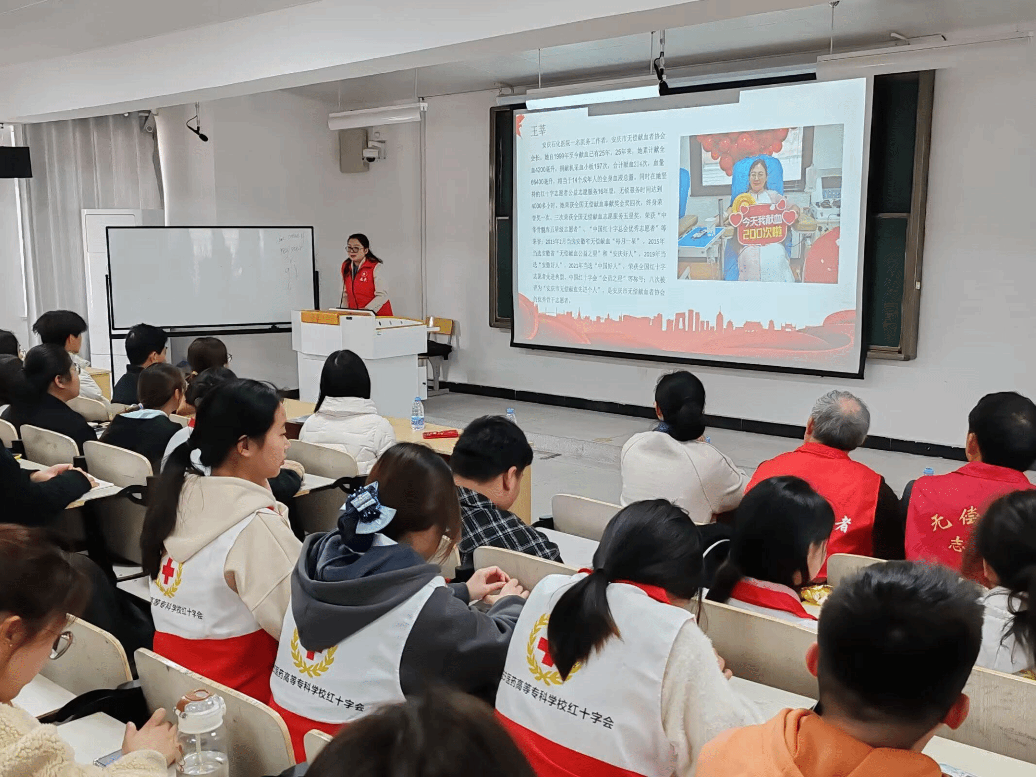 为弘扬“人道、博爱、奉献”的红十字精神,加强青年学生对无偿献血公益事业重要意义的认识,3月13日中午,校红十字会、校团委联合安庆市红十字中心血站举办“学雷锋,献热血”——无偿献血知识科普进校园活动。安庆红十字中心血站血源科宣讲员金荣、安庆市无偿献血先进典型王莘、濮建明、朱树生应邀来校宣讲。安庆市红十字中心血站副站长左敏善、校党委委员、党政办主任陈琪出席,130余名师生代表参加活动。