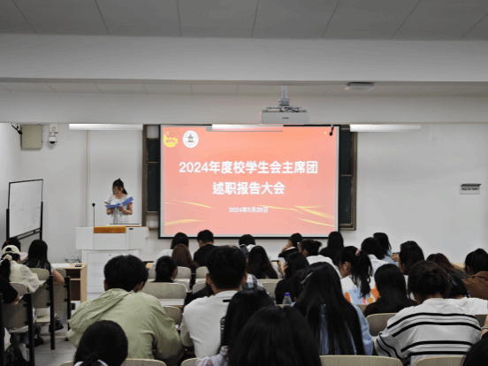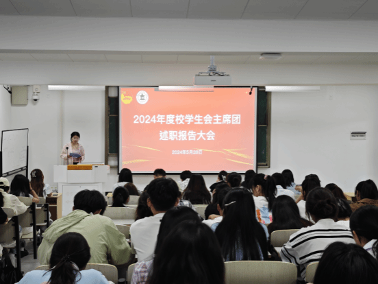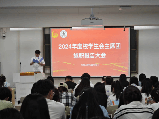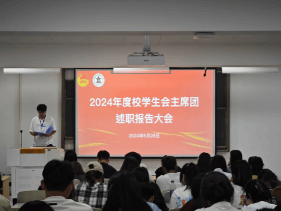 5月28日晚5时10分,为总结2023-2024学年校学生会工作成果成效,促进学生会健康发展,深化改革创新,推进从严治会,今年会于教学楼第九阶梯教室召开2023—2024学年校学生会主席团述职报告大会。学生委员会成员、各级(校级,院级)学生会全体成员参加了本次会议,团委老师出席并指导本次评议工作。