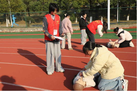 12月8日下午,应急接力跑活动在校操场成功举办。此次活动旨在通过趣味性的接力跑形式,提高同学们的应急救护意识和能力,让急救知识深入人心。