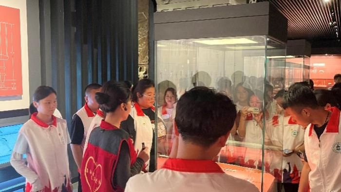 活动的最后一站是安庆市博物馆。馆内丰富的展陈以“安庆通史”为主线,从远古文明到近代风云,全方位展现了安庆作为国家历史文化名城的辉煌历程。同学们在青铜器、书画、民俗文物前驻足观看,并通过讲解员讲解,更深入了解了安庆的戏曲文化、工业发展及红色历史。博物馆内的珍藏让同学们更加深刻的了解到了中国文化的博大精深,安庆古文化的魅力所在。(图:吴冉、丁佳欣;文:汪豪杰;审阅:邓艳)