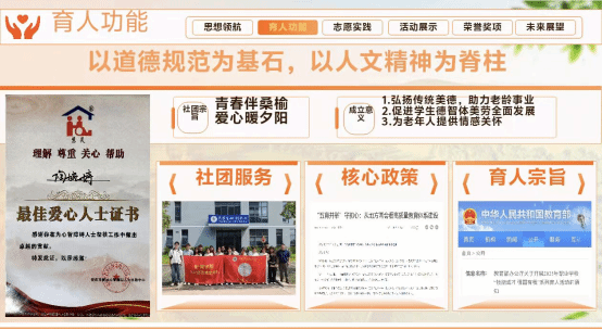 敬老学社以弘扬中华民族尊老、敬老、爱老、助老的传统美德为核心宗旨。社团定期组织志愿者前往合作的养老机构陪伴老人,缓解老人孤独感,同时举办新型养老产品设计大赛,助力老人融入科技生活,用实际行动诠释“奉献、友爱、互助、进步”的志愿精神,凭借常态化的公益实践、突出的社会价值,获评志愿公益类活力社团。(文、图:校学生社团管理服务中心)