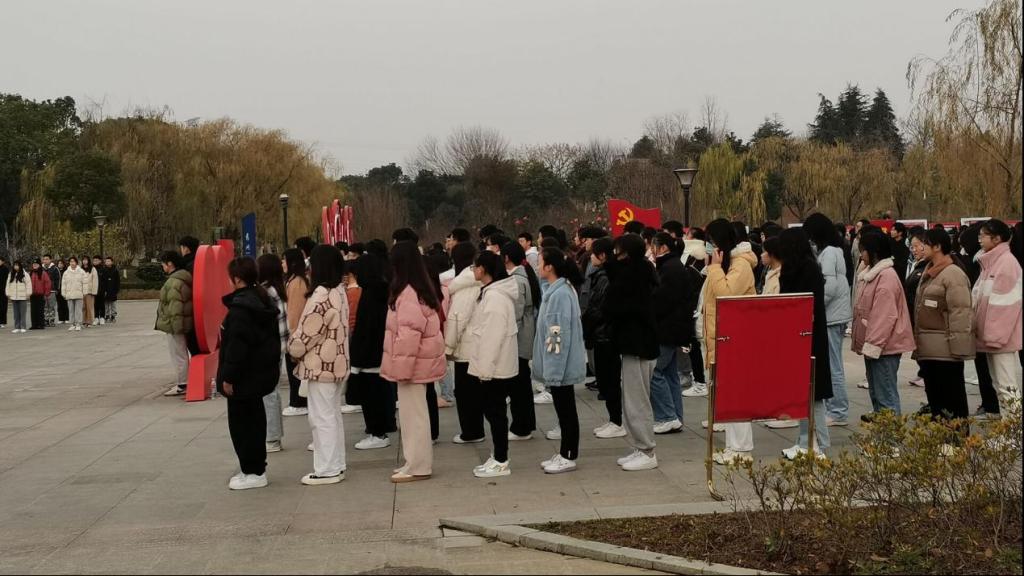 紧接着领誓人领誓,一句句铿锵有力的宣誓词在广场上空回荡,同学们都应该以此沉痛哀悼南京大屠杀的无辜死难者,缅怀为中国人民抗日战争胜利献出生命的革命先烈和民族英雄,铭记历史,砥砺前行。仪式最后,降半旗以缅怀牺牲的先烈及逝去的同胞。