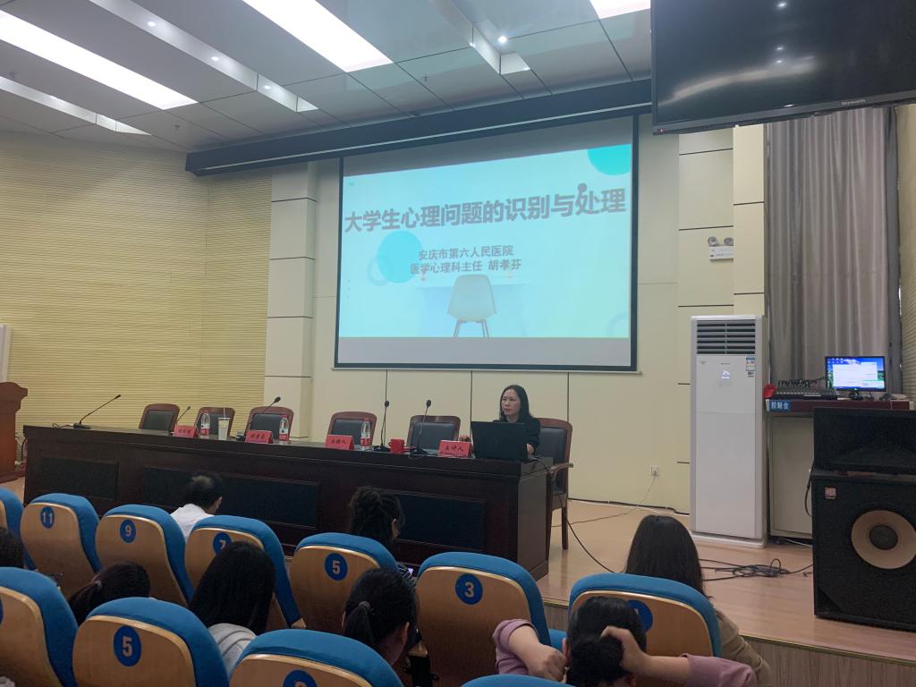 启动仪式结束后,由胡孝芬给在场师生带来了一场题为“大学生心理问题的识别与处理”的精彩讲座,胡孝芬从心理正常与心理异常、常见心理异常的症状、学生中常见心理疾病的识别与心理问题的处理四个方面,由浅入深地为在座师生普及了精神病学和心理学相关的知识,并介绍了大学生心理健康的判断标准,着重讲解了大学生常见的心理问题以及应对措施。此次胡主任的讲座,有效地为学校心理健康教育工作提供了思路,对和谐校园建设起到了良好的推进作用。