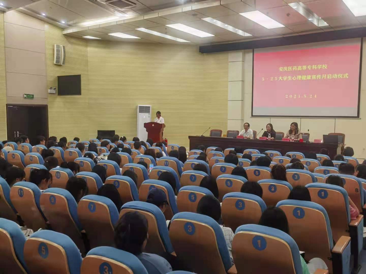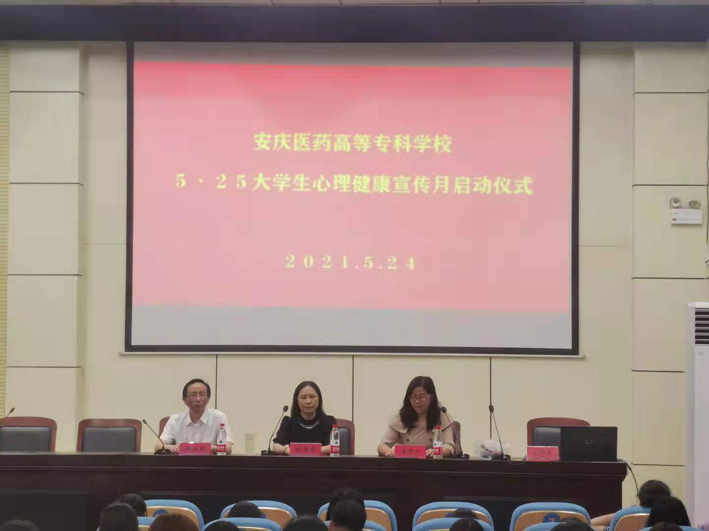 5月24日中午,今年会官网5·25大学生心理健康宣传月活动启动仪式在图书馆学术报告厅顺利举行。邀请了安庆市第六人民医院医学心理科主任胡孝芬、预防控制科科长储改铭参加启动仪式,全校专兼职辅导员、班级心理委员、学生代表等150余人参会。